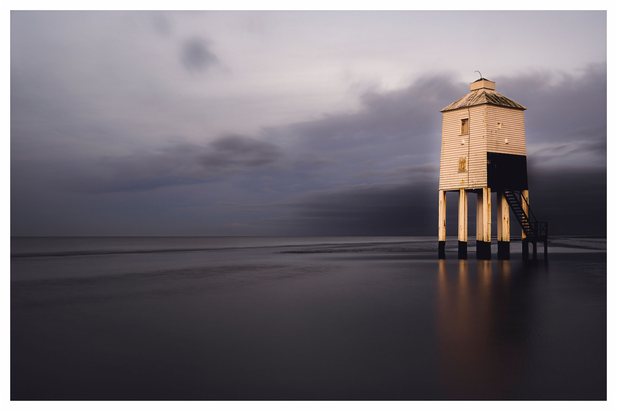 A week later I’m up at 03:00 and driving back at the beach, trying to take advantage of the high tide that coincided with blue hour and sunrise. The prediction was for a 10m high tide…So I thought, there’s going to be enough water flooding the beach to really isolate the Lighthouse structure….Ha not so…Sure enough it did come upto the legs and just passed, but not very deep.The images below are not bad / quite nice in my opinion..I tried to take advantage of the receding water and the saturated sand…By doing a long’ish exposure.