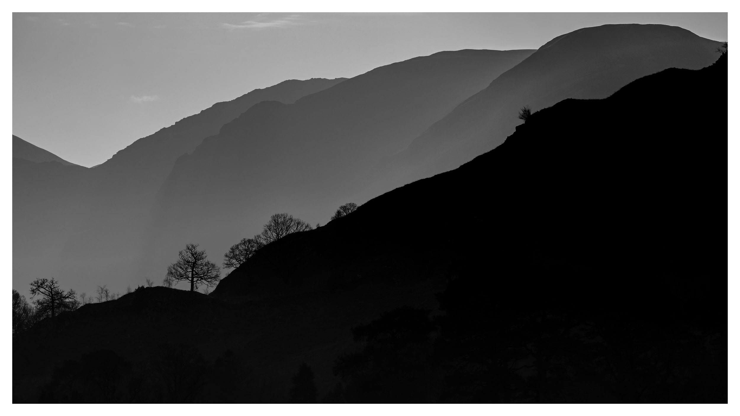 Light and shadow revealing the different layers of the fells. Ullswater area.