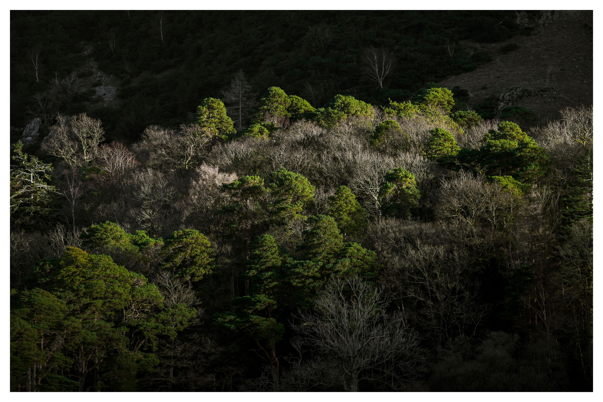 Green tips of the trees. Ullswater.