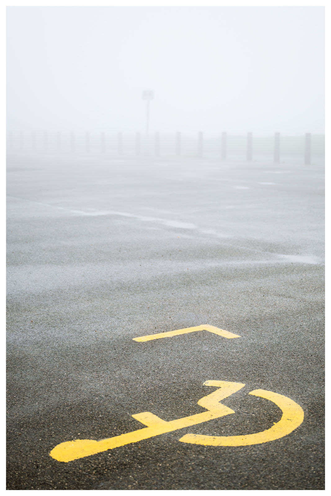 Designated parking spot & thick low cloud. On the South Downs close to Beachy Head.